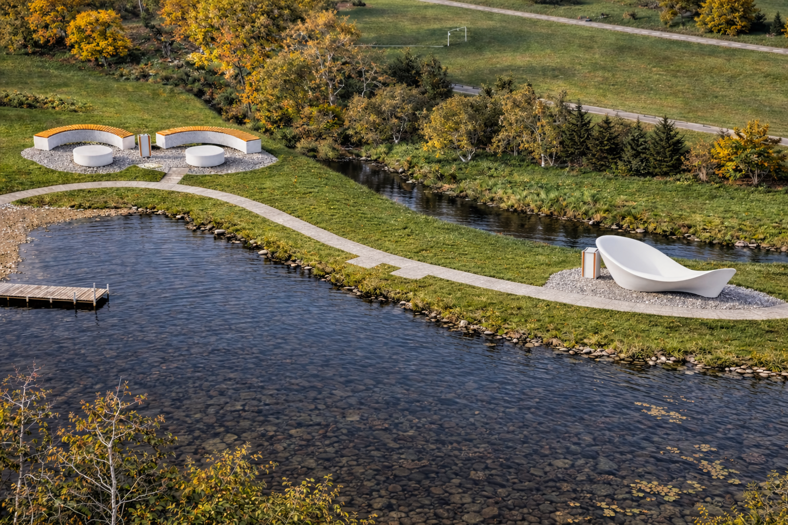 betoninius suoliukus-skulptūras. Įmantrūs ir šiuolaikiški suoliukai -skulptūros vingiuotomis gamtos linijomis.